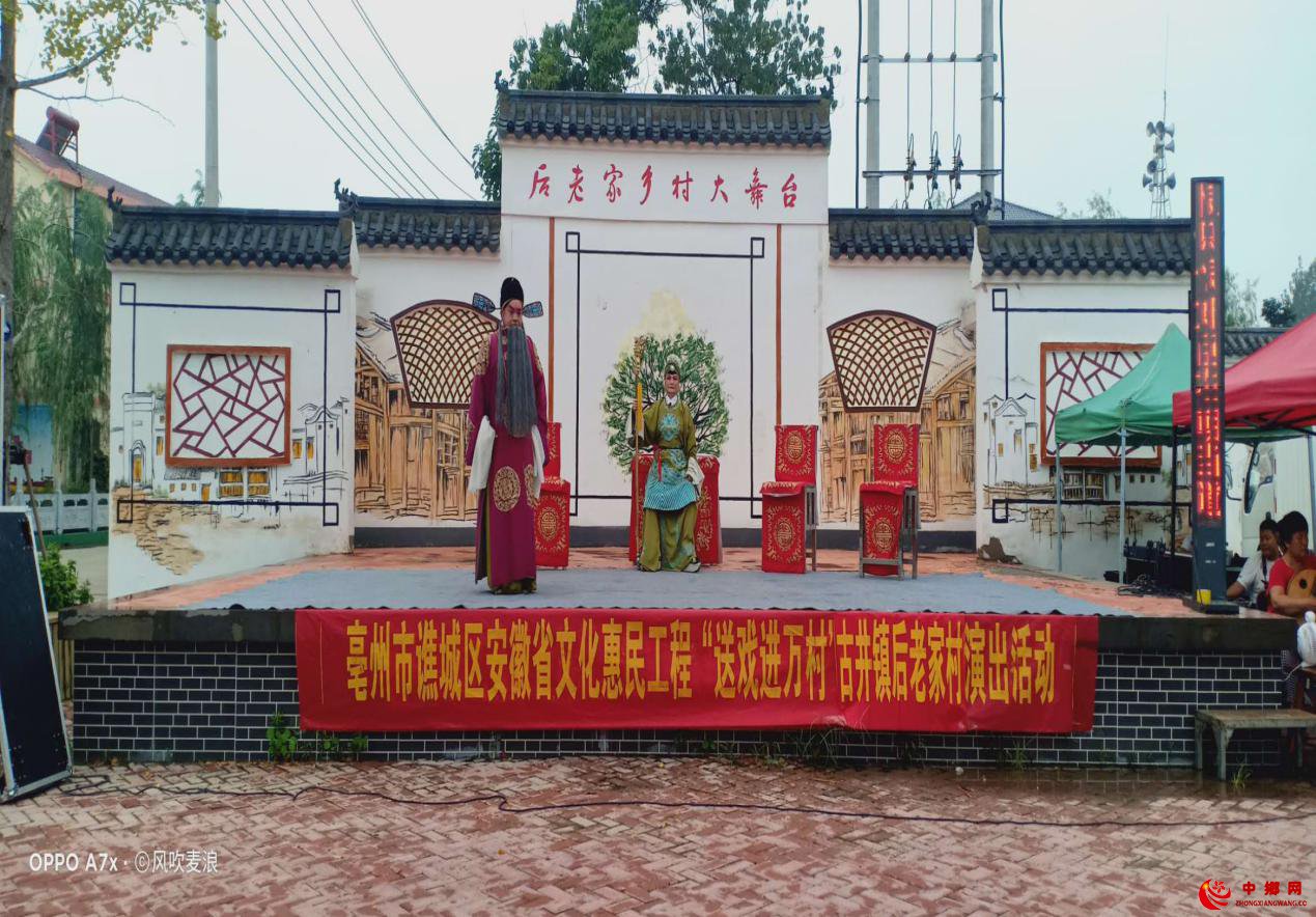 中乡网安徽讯 为了弘扬中华民族优秀传统文化,丰富农村群众的文化生活。近日,在亳州市谯城区古井镇后老家村乡村大舞台上,开展谯城区安徽省民生工程“送戏进万村”演出活动。