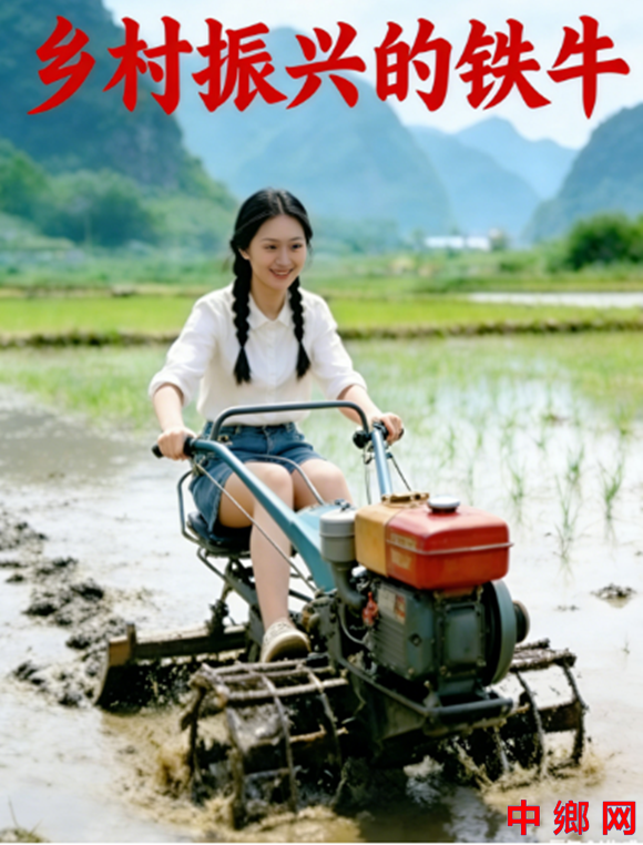 侄女蹲在旁边,手里攥着两张照片。一张是黑白的,边角磨得发毛,六十三岁的父亲赤着脚站在田埂上,裤脚卷到大腿,手里攥着木犁柄,前面的水牛垂着耳朵,口吐白味在吃力地往前挪蹄,田埂边的秧苗细得像线。另一张是彩色的,二十五岁的她坐在旋耕机上,白衬衫飘在风里,身后的田翻着匀净的泥浪,天空蓝得像块洗过的布。