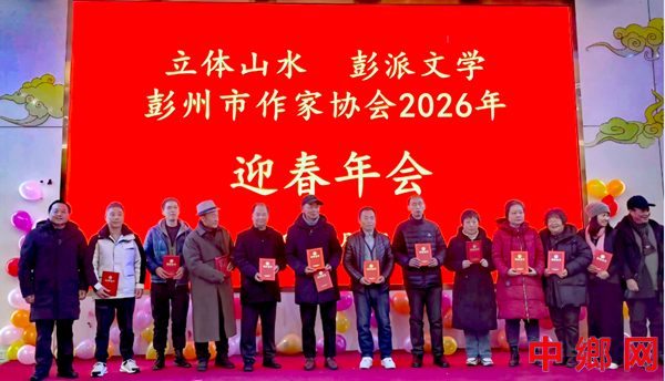 中乡网四川成都彭州讯 1月23日,彭州市作家协会2025年年会暨2026迎新春文艺联欢会在馨悦酒楼圆满落幕。120余名协会会员与行业嘉宾欢聚一堂,共庆协会二十华诞,共话文学赋能地方发展新路径。成都市作家协会主席熊焱,彭州市老领导、市政协原副主席陈德友,成都市作家协会秘书长朱晓剑,彭州市融媒体中心负责人,市文化馆馆长郑兴明等领导和嘉宾出席活动。