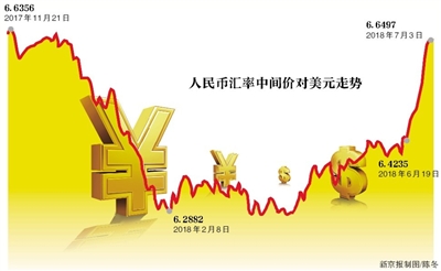 以人民币对美元中间价计,从6月19日开始,人民币就连跌8天,直到本周一(7月2日)微升至6.6157,而周二又跌至6.6497。