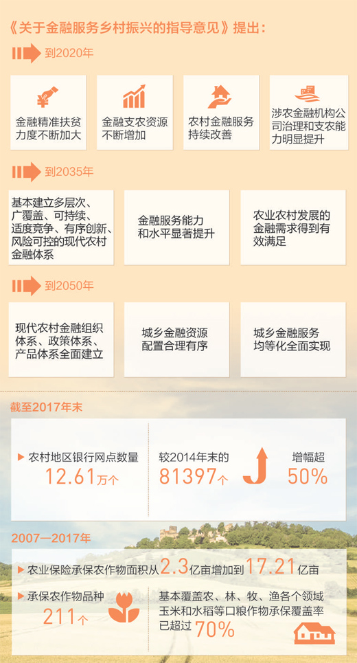 日前,中国人民银行等五部门发布《关于金融服务乡村振兴的指导意见》,明确把更多金融资源配置到农村重点领域和薄弱环节,更好地满足乡村振兴多样化、多层次的金融需求,推动城乡融合发展。