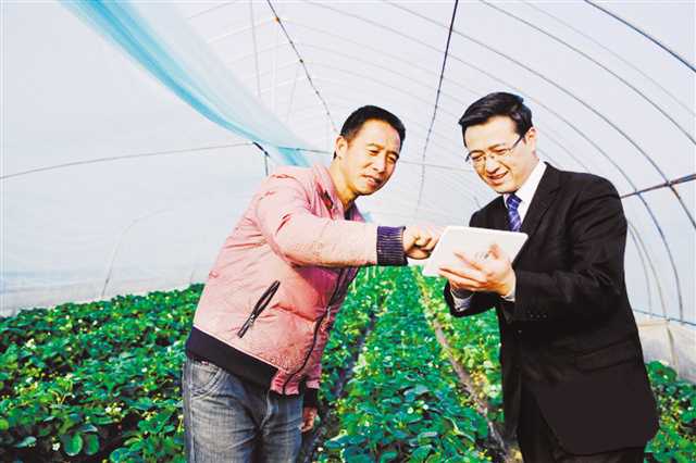 重庆渝北银座村镇银行客户经理利用移动互联网技术——“移动工作站”,为小微客户上门办理贷款业务,