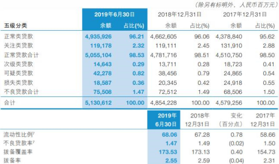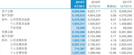 截至2019年6月30日,交通银行的贷款总额为51306.12亿元,同比增长5.69%;存款总额为60547.28亿元,同比增长5.77%。