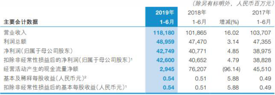 中国经济网北京8月29日讯(记者 田云绯 华青剑) 8月27日晚间,交通银行股份有限公司(以下简称“交通银行”,601328.SH)发布2019年半年度报告。今年上半年,交通银行实现营业收入1181.80亿元,同比增长16.02%;实现归属于母公司股东的净利润427.49亿元,同比增长4.85%;实现归属于母公司股东的扣除非经常性损益后的净利润426.00亿元,同比增长4.79%;经营活动产生的现金流量净额为29.45亿元,同比减少96.14%。