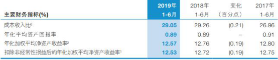 2019年1-6月,交通银行的年化加权平均净资产收益率为12.57%,较上年同期下降0.19个百分点;扣除非经常性损益后的年化加权平均净资产收益率为12.53 %,较上年同期下降0.19个百分点。