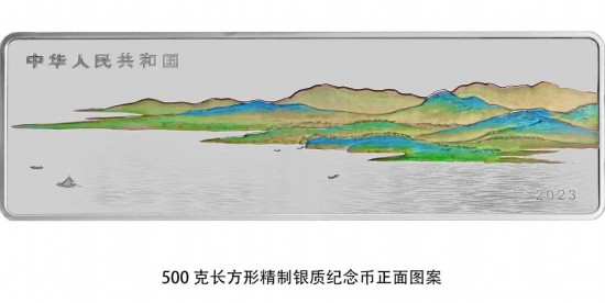 500克长方形银质纪念币为精制币,含纯银500克,规格160毫米×50毫米,面额150元,成色99.9%,最大发行量2000枚。
