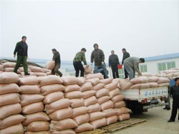 兴城堆积如山的花生装车待运。