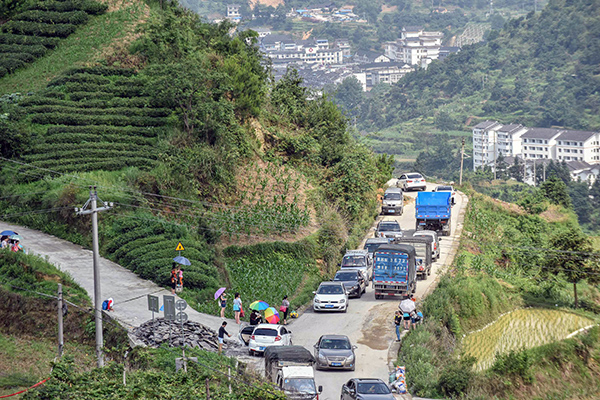 5月27日,部分群众转移到雷山县城外地势较高的山上。