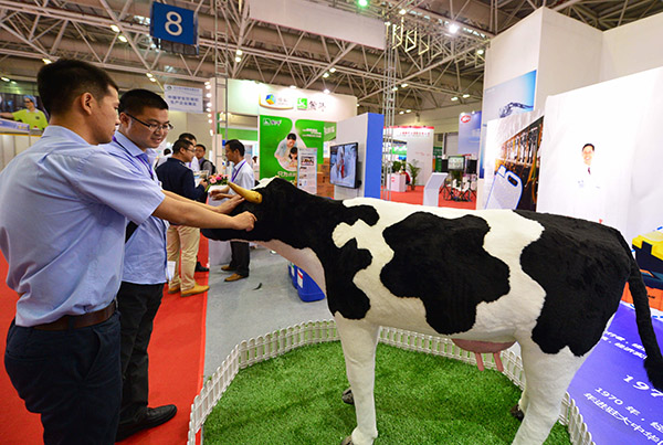 5月31日,人们在第六届中国奶业大会展馆现场参观。
