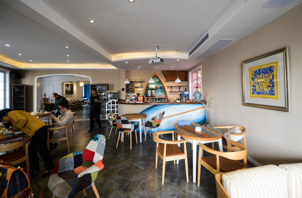 10月27日,游客在田岙村一家充满渔村文化元素的咖啡馆中休息。
