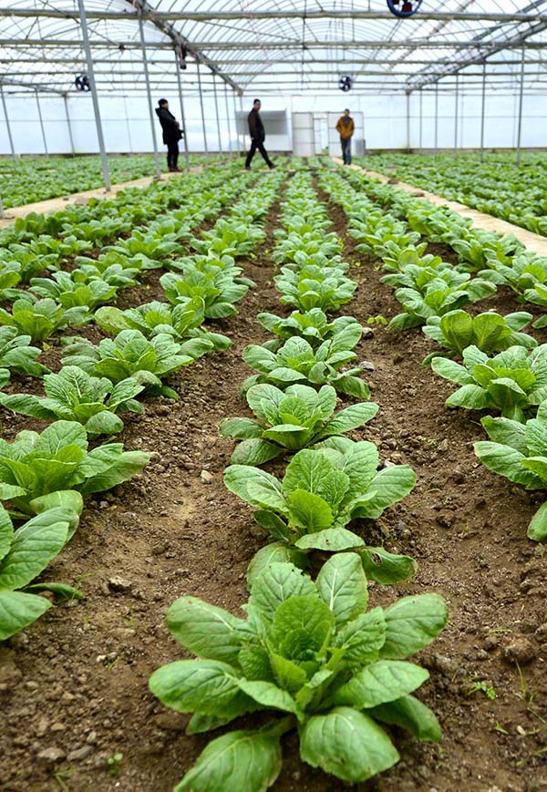 12月14日,湖北省宣恩县锣圈岩村农民在管理由当地企业援建的大棚蔬菜。