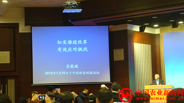 “第七届中国经济前瞻论坛”10日在京举办.中央农村工作领导小组副组长陈锡文应邀在论坛演讲。 本网记者 牟汉杰 摄