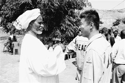苏丹当地农户与新纪元公司种植加工基地员工热情交谈。记者李逸达摄