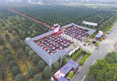 7日,郫县唐昌镇先锋村重阳节坝坝宴现场
