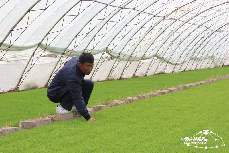 绰勒银珠董事长朴成奎在查看稻秧长势。殷淑娟 摄