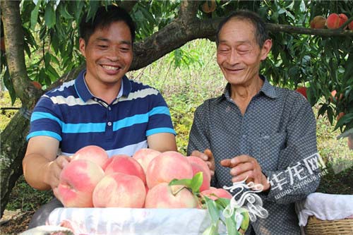 在仙女脆桃基地,全国劳模、筏子村的种桃大户申建忠看着背篓里刚摘下来的脆桃,喜笑颜开。因为今年他的脆桃刚拿到网上售卖一个多月,就卖了2万多斤。申建忠算了一笔账,按照15元每斤的价格,这就意味着他的脆桃仅网上销售就能达到30多万元。想到这儿,申建忠乐坏了。