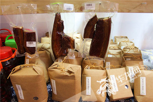 陈明亿告诉记者,他们打造了“五农人”品牌,26个乡镇还开通了网上特产乡村馆。“现在体验馆内有近四成农产品都是来自贫困户。”陈明亿说。