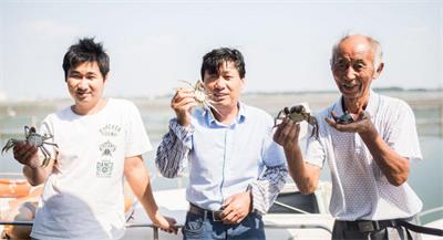 大家心情不错,一起在养殖水域拍了张合影,从左边开始依次是孙子、儿子和爷爷,张爷爷手上还拿着一条刚抓起来的塘鲤鱼。张爷爷说,今年赚一百万应该没问题。“并不是每年都能赚那么多,去年就亏了,我们是看天吃饭。”孙子张平补充道。张爷爷92年刚养螃蟹的时候一年只能赚一两万,还靠贷款养蟹,如今很多家庭和他们一样都能年入百万。