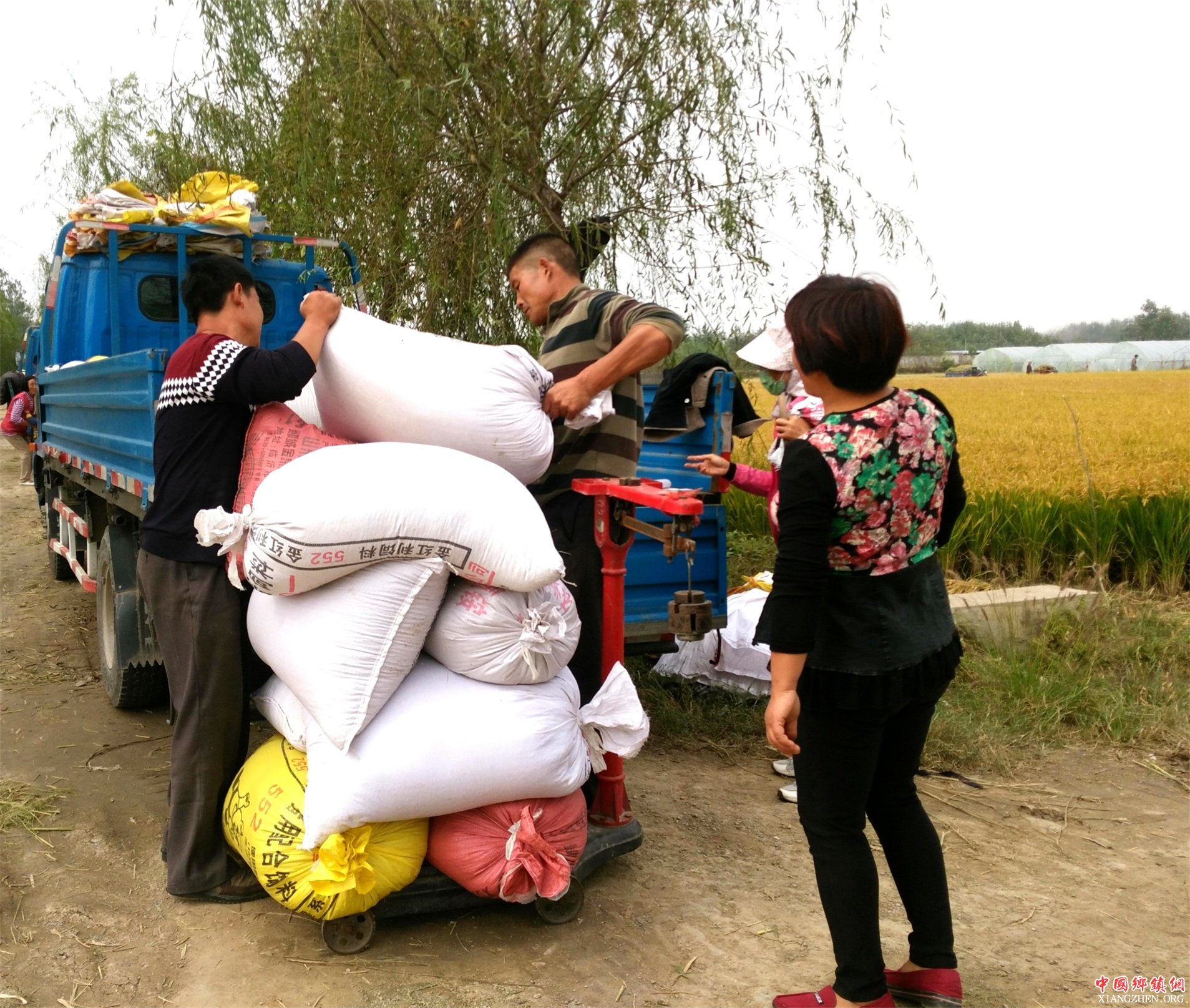稻谷飘香,商家跟上。10月7日,在山东省郯城县马头镇采莲湖片这两对来自街道颜屯村的夫妻俩忙碌着过称装车。采莲湖片稻谷香飘四溢,吸引“鸳鸯车队”的20多辆三轮车前来购销,当天价格为1.13元成交。