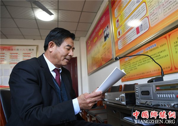 11月7日,十九大代表、河北省正定县塔元庄村村支书尹计平通过村广播站给村民宣讲十九大精神。新华社记者 申宏 摄