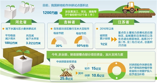 农业部日前在北京召开耕地轮作休耕制度试点推进落实会。会议透露,经过两年的探索,我国已构建了耕地轮作休耕收益补偿的政策框架。目前,耕地轮作休耕试点面积达1200万亩,涉及黑龙江、河北、湖南等9个省份的192个县(市)。