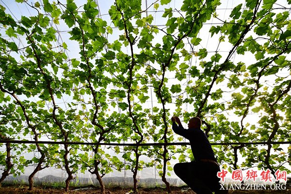 2月23日,河北省滦县东安各庄镇农民在管理大棚种植的葡萄。