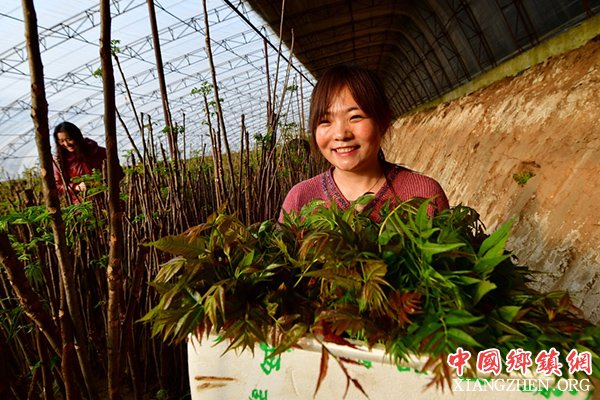 2月23日,河北省滦县油榨镇农民在大棚内收割香椿。