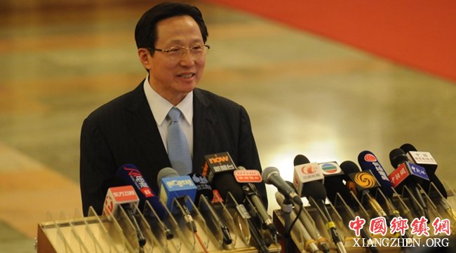 图:韩长赋接受央视提问,表示第二轮土地承包到期后再延长30年