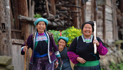 3月12日,在广西融水苗族自治县杆洞乡高培村,村民劳作后走在回家的路上。连日来,广西各地春暖花开,融水苗族自治县群众抓紧农时,积极为春耕做准备。 新华社记者 黄孝邦 摄