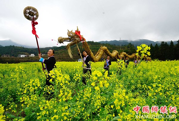 3月18日,在广西龙胜各族自治县平等镇广南村,侗族同胞在油菜花田里舞草龙,为新的一年讨个好彩头。