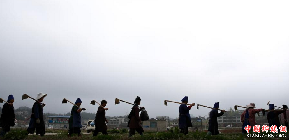 贵州省丹寨县兴仁镇甲脚村,农民在田间耕作。