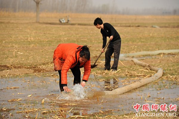 3月22日,河北省泊头杨寺门村村民在为小麦浇水。