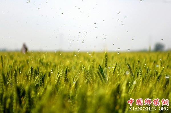河北省衡水市冀州区周村镇沃源家庭农场喷灌设备在麦田进行喷灌作业(2017年5月20日摄)。近年来,衡水市冀州区广泛推行微喷、管灌、地表水灌溉等高效节水灌溉模式。