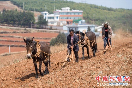 云南省昆明市东川区红土地镇农民在田间劳作(3月22日摄)。初春时节,云南省昆明市东川区红土地镇田间地头一派繁忙。农民们翻田犁地、播种施肥,开始新一年的春耕生产。 新华社记者胡超摄