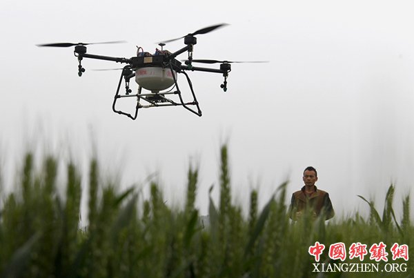 工作人员在河南省温县武德镇南徐堡村一处农田里操作无人机喷洒农药(4月25日摄)。 目前正值小麦“一喷三防”的关键期,河南省温县农户利用无人机对小麦进行大规模喷药作业,保障夏粮丰收。 新华社记者 李安 摄