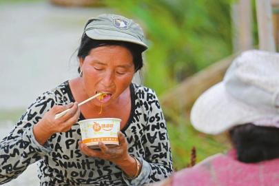 为了赶时间,“蔺草客”的午餐都是在田间进行。