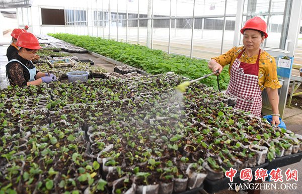 7月19日,将乐县万安镇良坊村低保户杨长珠(右)在一家生物科技有限公司里为苗木浇水。