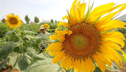 7月22日,山东省枣庄市光明路街道东山阴村农民在田间劳作。 新华社发(孙中喆 摄)