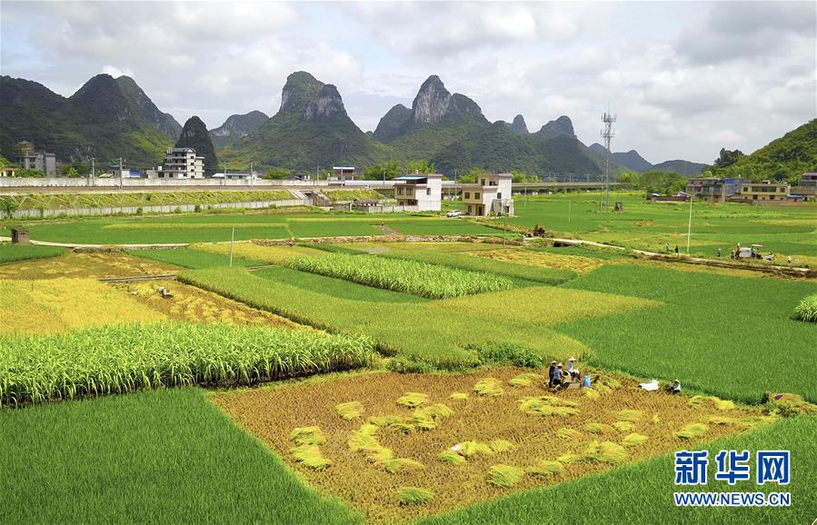 连日来,广西柳州市柳江区早稻陆续成熟,当地农民冒着酷暑抢收早稻、抢插晚稻。
