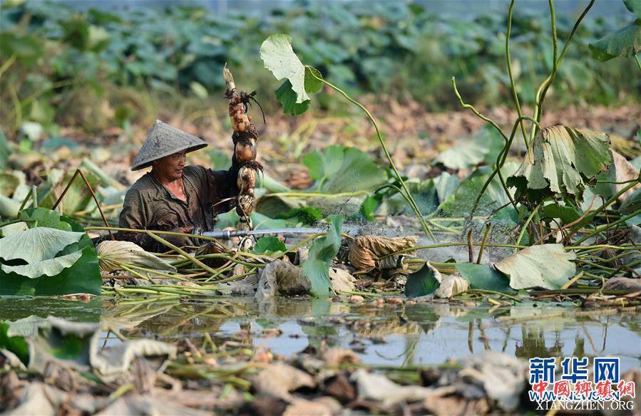 盛夏时节,安徽省肥西县丰乐镇农民抢抓农时,冒着高温收获莲藕、为水稻喷洒农药,田间地头一片繁忙景象。 新华社发(徐勇 摄)