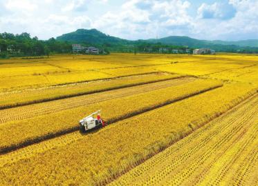 今年广安市广安区水稻种植面积达33.5万亩,其中机收面积将达到80%以上。目前,广安区组织江苏、河南、安徽等地的300余台联合收割机开展跨区收割,8月底前将全面完成收割任务。图为8月7日,联合收割机在广安区花桥镇收割水稻。