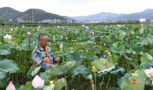 8月23日,建瓯市吉阳镇吉阳村村民葛永祥在采摘莲子。