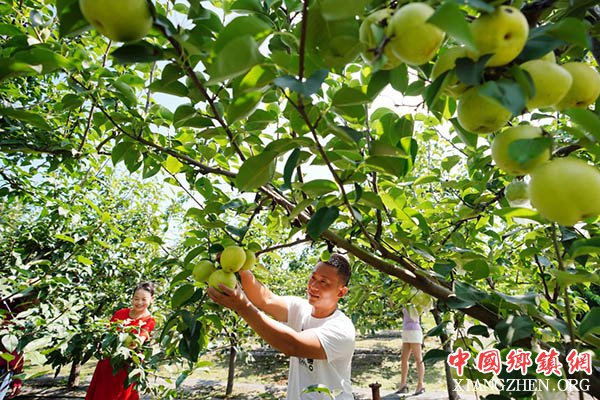 8月25日,游客在河北省唐山市丰润区任各庄镇一家农场内采摘鲜梨。