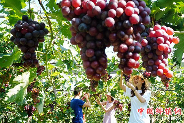 8月25日,游客在河北省唐山市丰润区任各庄镇一家农场内采摘葡萄。