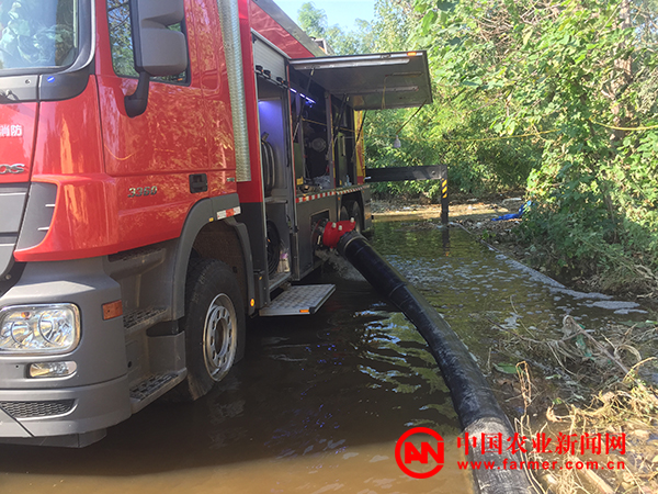 8月26日,专业救灾车辆开进纪台镇孟家村,大大加快了该村的抽水进度。