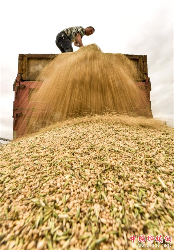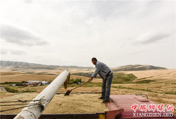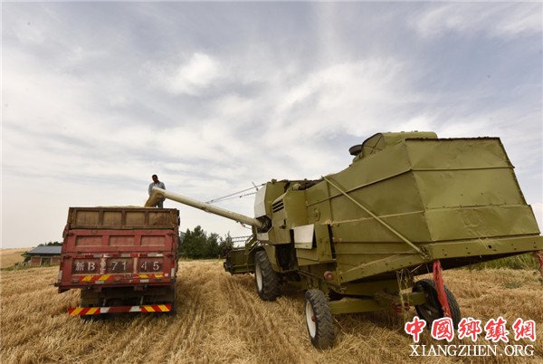随着新疆昌吉回族自治州奇台县、木垒哈萨克自治县的上百万亩旱地小麦逐渐成熟,农民们开始收割小麦,天山麦海呈现出一派丰收景象。