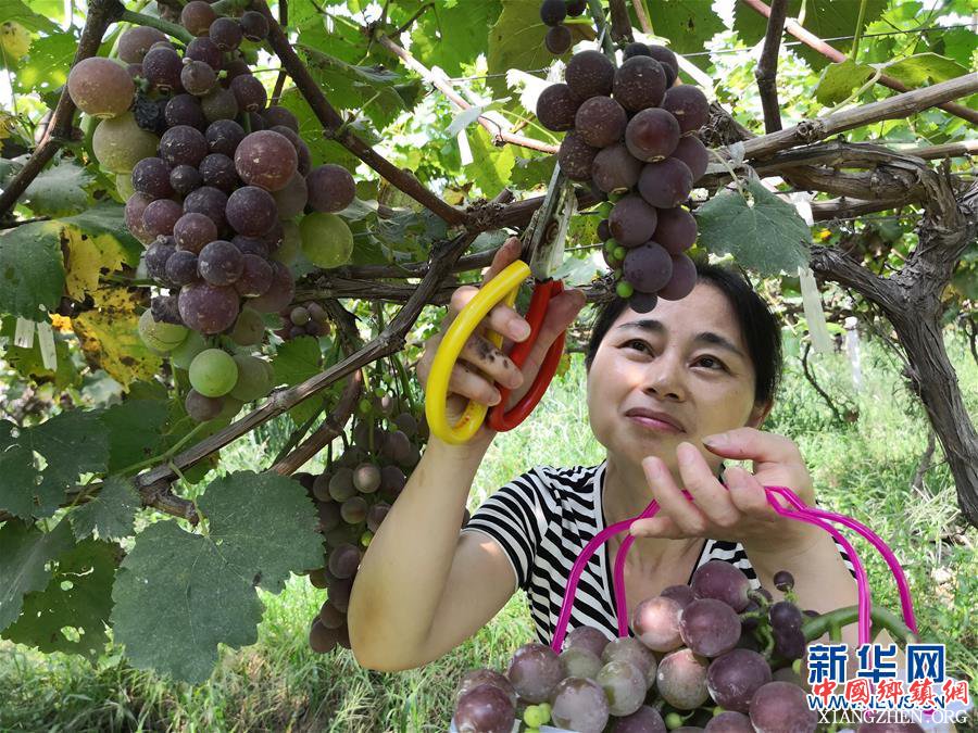 8月30日,游客在湖州市南浔区练市镇森赫生态农业园采摘葡萄。新华社记者 王小川 摄