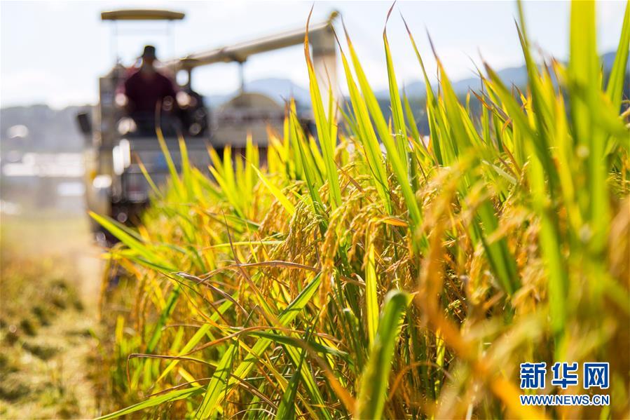近日,湖北省襄阳市保康县水稻开镰收割,田间地头到处是繁忙的丰收景象。