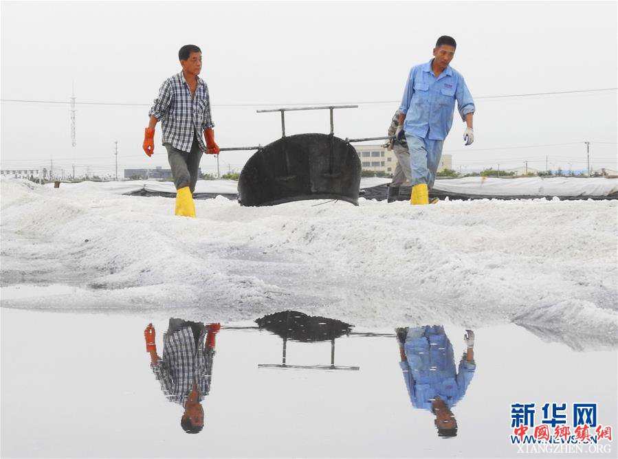 近日,江苏连云港数十万亩盐田全面进入秋季扒盐作业阶段。工人们忙碌着收获原盐,盐田中一派繁忙景象。