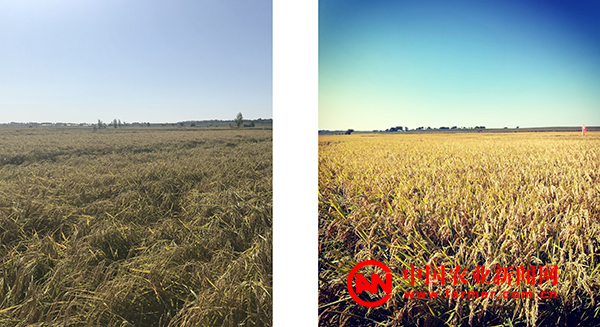8月下旬以来的连阴雨天气,以及9月13日,黑龙江省五常市常堡乡南岗村又经历了一场冰雹,大批当地主栽水稻品种倒伏,中科804却能屹立不倒
